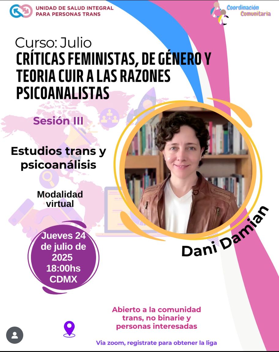 Desde el año 2010 he sido docente en distintas universidades y he impartido múltiples seminarios sobre psicoanálisis, estudios trans* y teoría queer. También he publicado diversos artículos académicos en revistas especializadas, capítulos de libros y he participado como ponente en conferencias, mesas de diálogo, conversatorios y consultorías especializadas sobre estas temáticas. Actualmente me encuentro concluyendo un Doctorado en Psicología Social y Ambiental en la UNAM, con una investigación que se centra en las narrativas identitarias de las infancias trans* y los procesos que viven sus familias en la Ciudad de México.